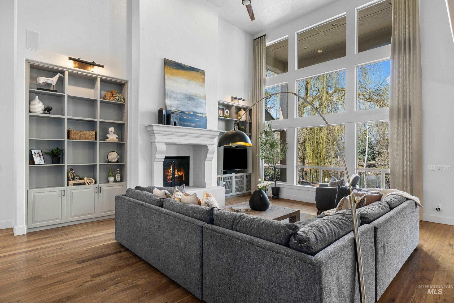 Experience elevated waterfront living in the heart of Eagle. This fully remodeled luxury home blends refined design with effortless indoor?outdoor living, all set against tranquil water views. Inside, the stunning gourmet kitchen is designed to impress, featuring premium Wolf appliances, double ovens, a built-in refrigerator, and a spacious island complete with a secondary prep sink. The kitchen flows seamlessly into the dramatic living room, where a floor-to-ceiling stone fireplace is flanked by custom built-ins and expansive windows framing the serene waterfront backdrop. For hosting and special gatherings, the large formal dining room includes a stylish built-in bar area, creating the perfect space for entertaining. The luxurious main-level primary suite offers a spa-like retreat with dual vanities, a soaking tub, and a beautifully tiled walk-in shower. Upstairs, youll find 3 spacious bedrooms, each with its own ensuite, along with a large bonus room that provides flexible space for a media room, playroom, or lounge area. Step outside to your private backyard oasis designed for low-maintenance luxury. Enjoy turf landscaping, a sprawling paver patio, & a fully equipped outdoor kitchen. Relax around the built-in gas fire pit perched right on the water, & unwind in the hot tub. Located minutes from the Boise River Greenbelt with easy access to Eagles top restaurants and amenities.